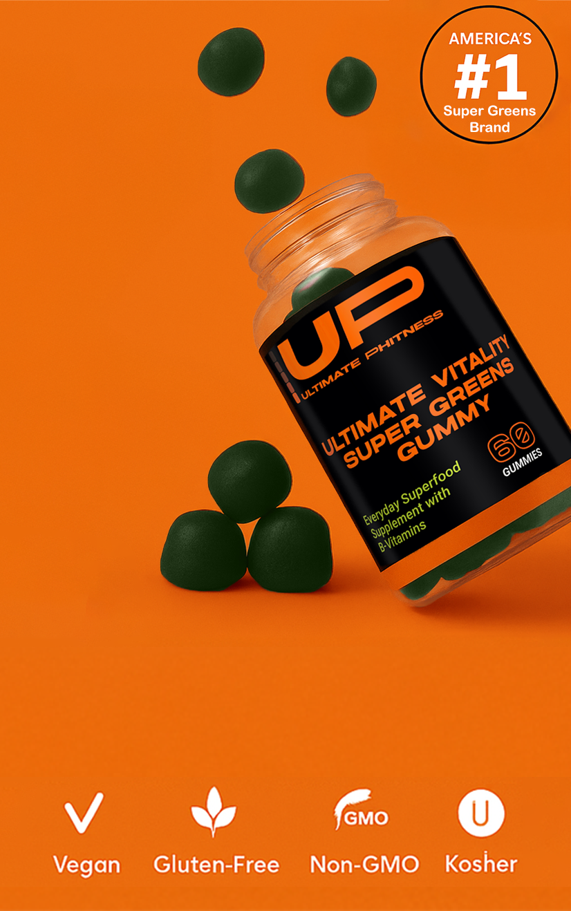 Ultimate Phitness® Super Greens Gummies pack 20+ superfoods into one delicious, convenient gummy. Each serving provides a nutrient-rich blend of greens, fruits, and vitamins designed to support detox, digestion, energy, and immunity—without artificial additives or the bitter taste of powders.